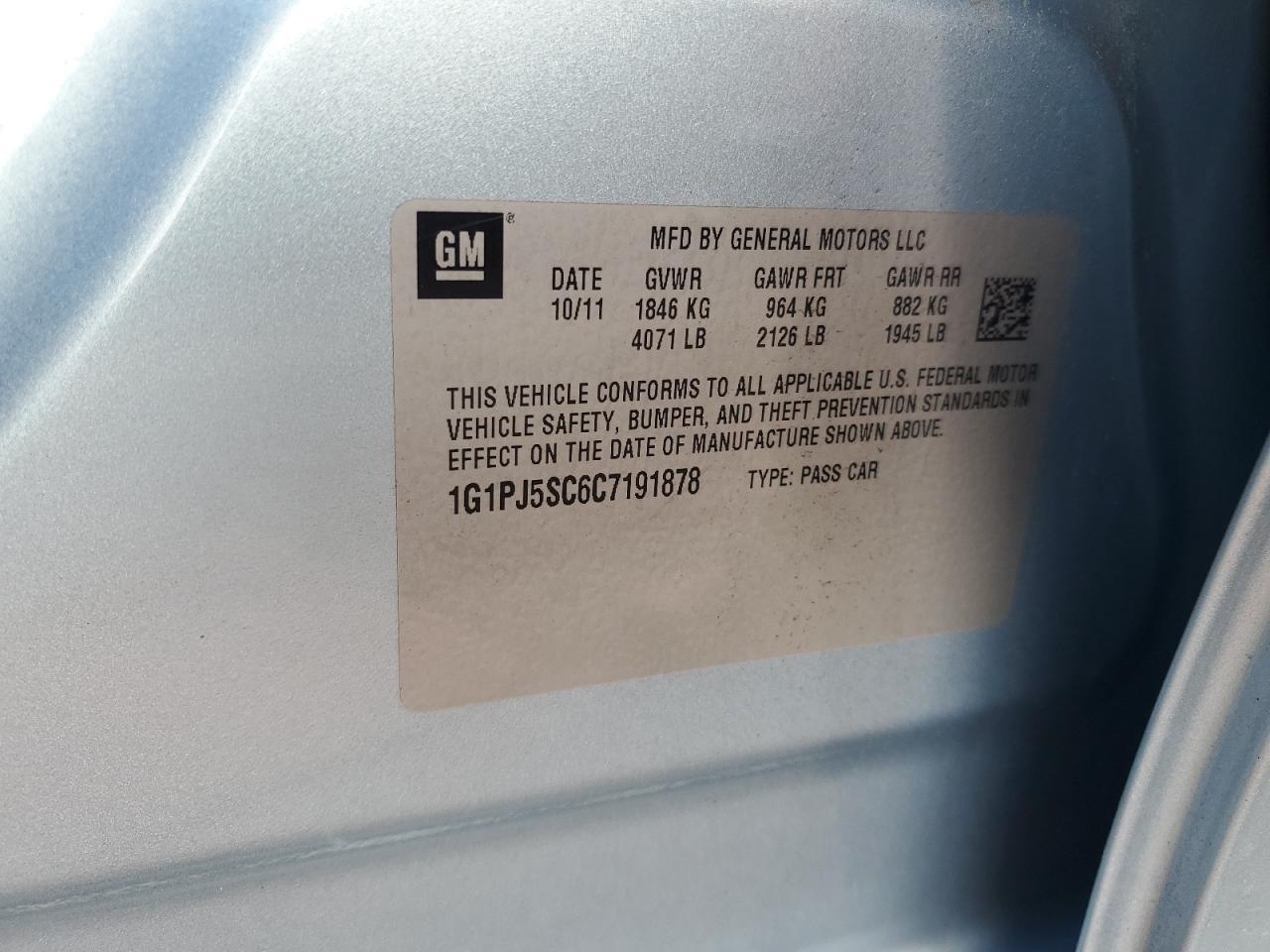 CHEVROLET CRUZE 1.4 2012 г.в., (1G1PJ5SC6C7191878) из США