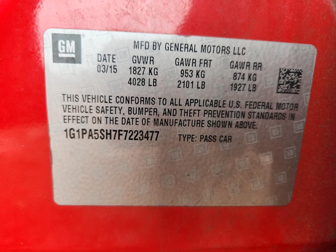 Цвет КрасныйЦилиндры 4VIN 1G1PA5SH7F7223477Состояние НеизвестноПовреждение Передняя или задняя