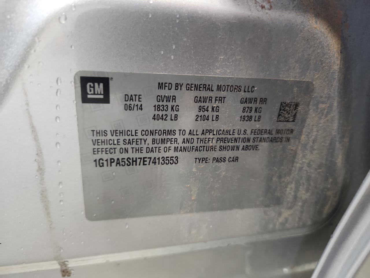 CHEVROLET CRUZE 1.8 2014 г.в., (1G1PA5SH7E7413553) из США