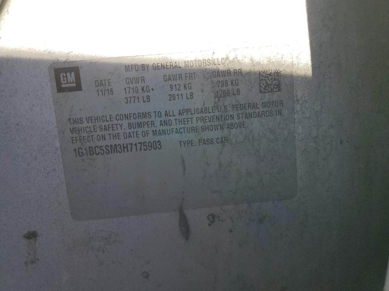 Цвет СеребряныйЦилиндры 4VIN 1G1BC5SM3H7175903Состояние НеизвестноПовреждение По бокамДата аукциона 2025-11-04