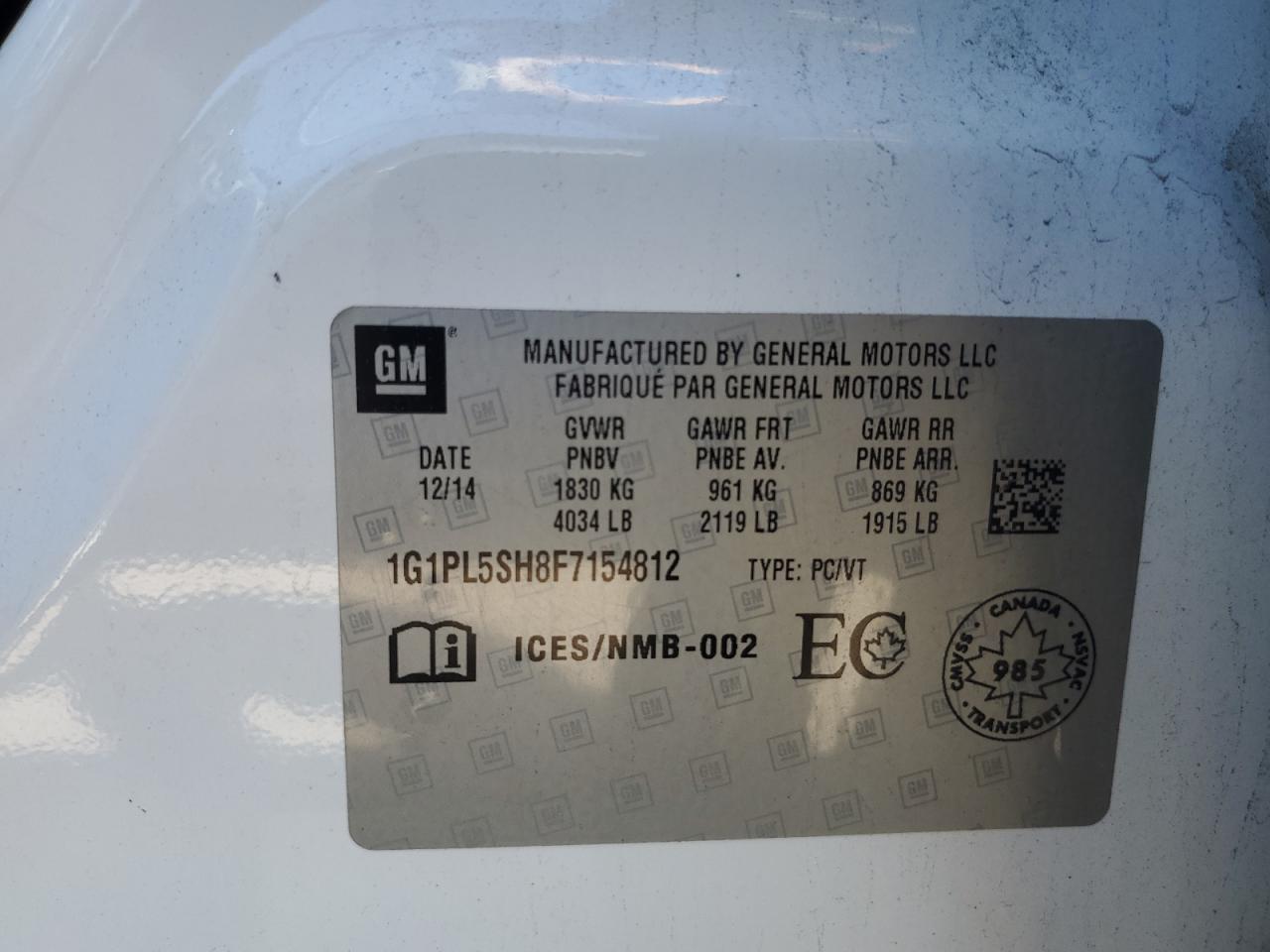 Цвет БелыйЦилиндры 4VIN 1G1PL5SH8F7154812Состояние НеизвестноПовреждение По всему авто