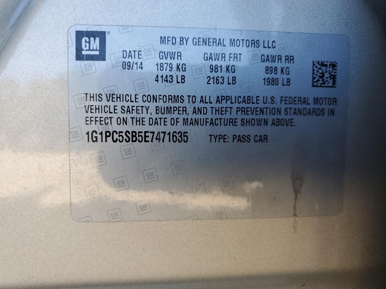CHEVROLET CRUZE 1.4 2014 г.в., (1G1PC5SB5E7471635) из США
