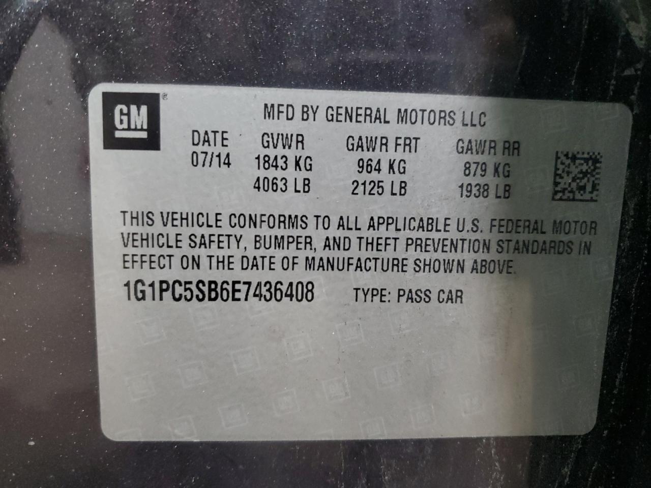 CHEVROLET CRUZE 1.4 2014 г.в., (1G1PC5SB6E7436408) из США