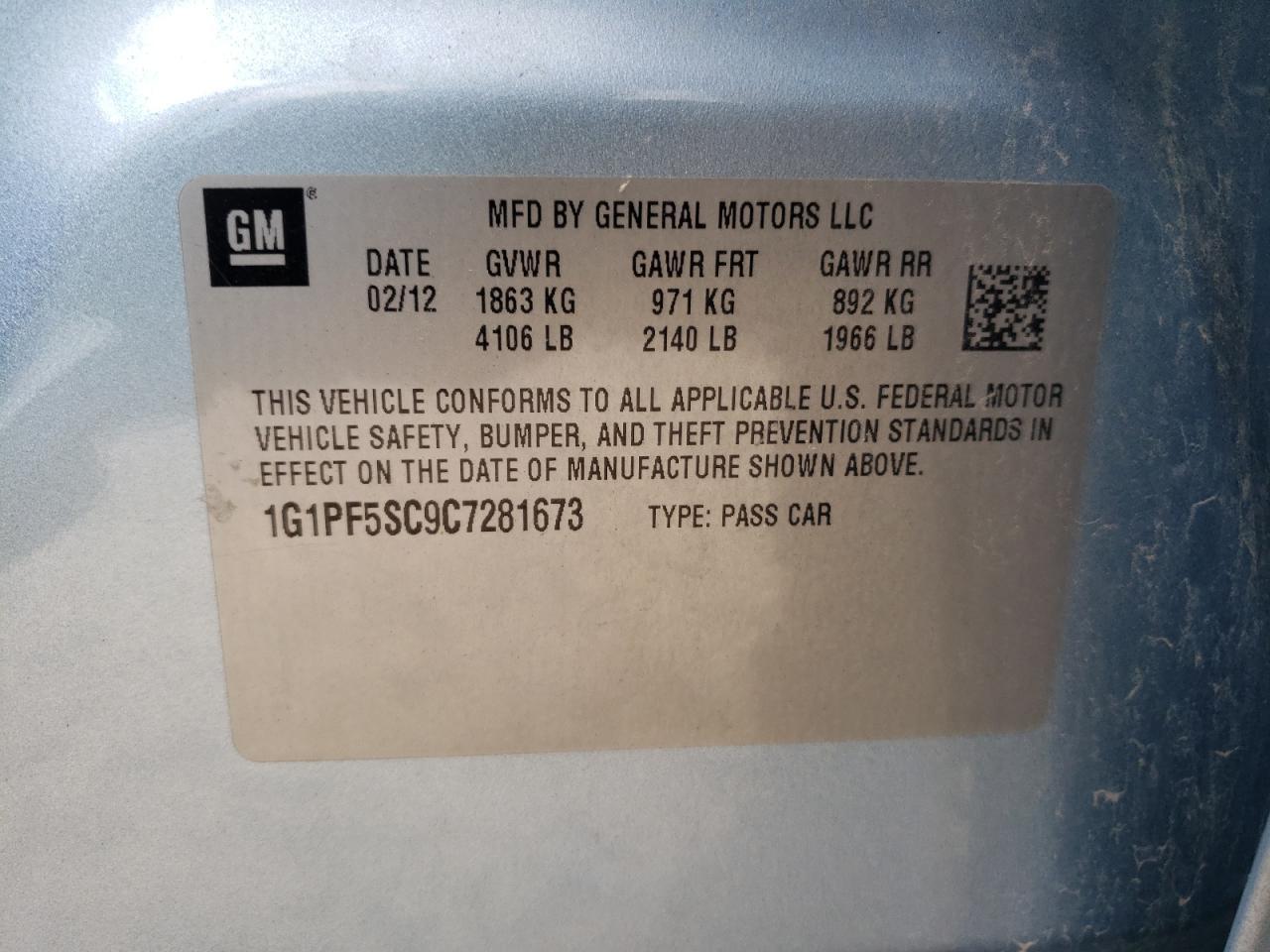 CHEVROLET CRUZE 1.4 2012 г.в., (1G1PF5SC9C7281673) из США
