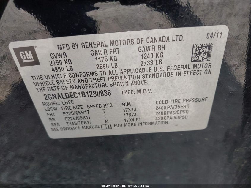 2011 CHEVROLET EQUINOX 1LT