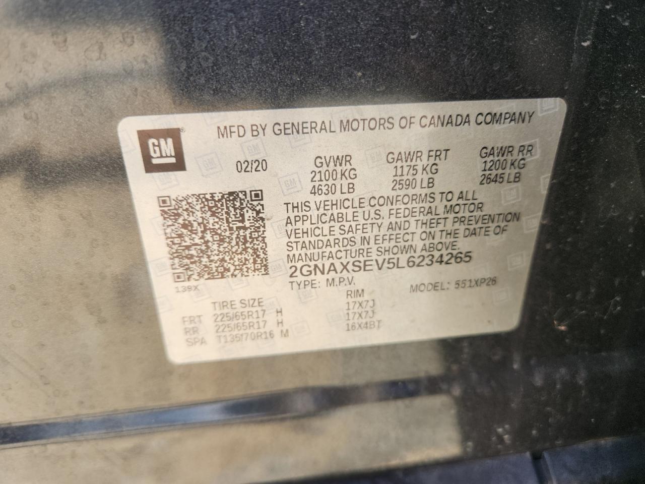 CHEVROLET EQUINOX 1.5 2020 г.в., Полный привод (2GNAXSEV5L6234265) из США