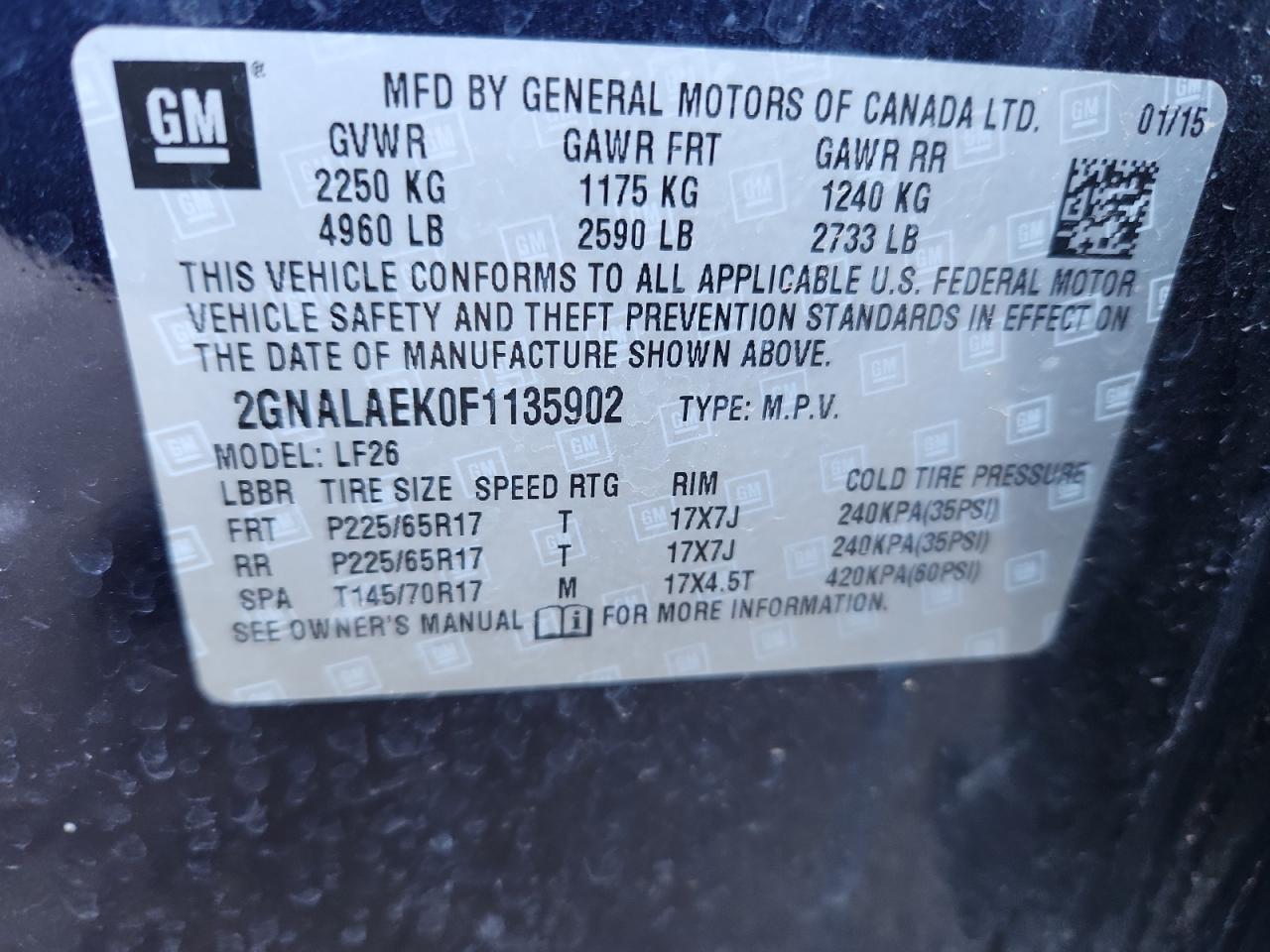 2015 CHEVROLET EQUINOX LT