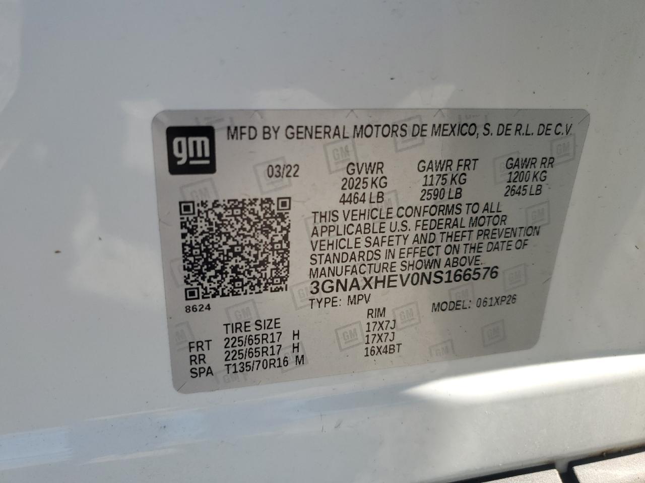 CHEVROLET EQUINOX 1.5 2022 г.в., (3GNAXHEV0NS166576) из США