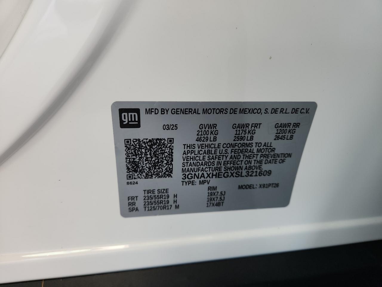 CHEVROLET EQUINOX 1.5 2025 г.в., (3GNAXHEGXSL321609) из США