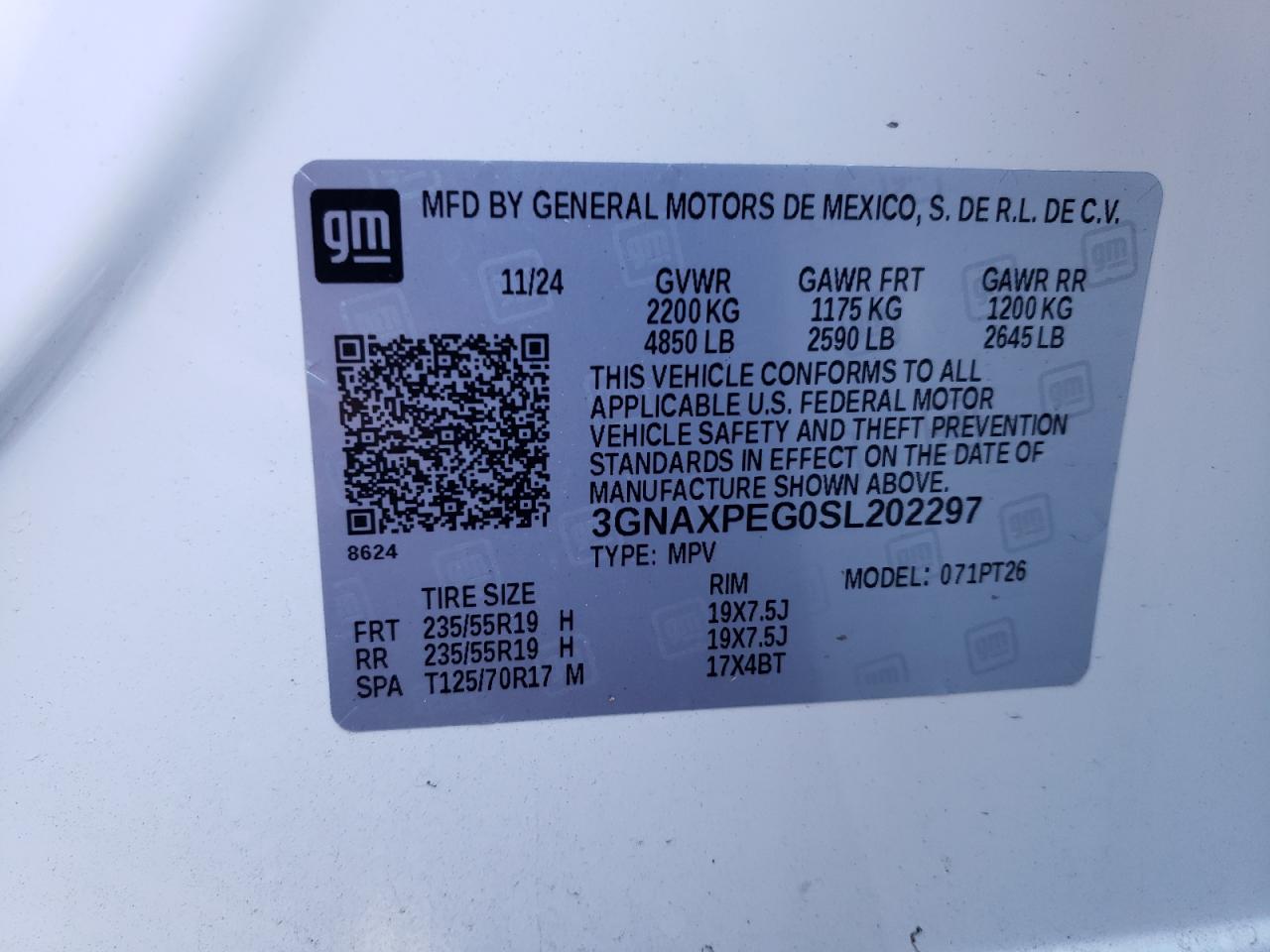 CHEVROLET EQUINOX 1.5 2025 г.в., Полный привод (3GNAXPEG0SL202297) из США