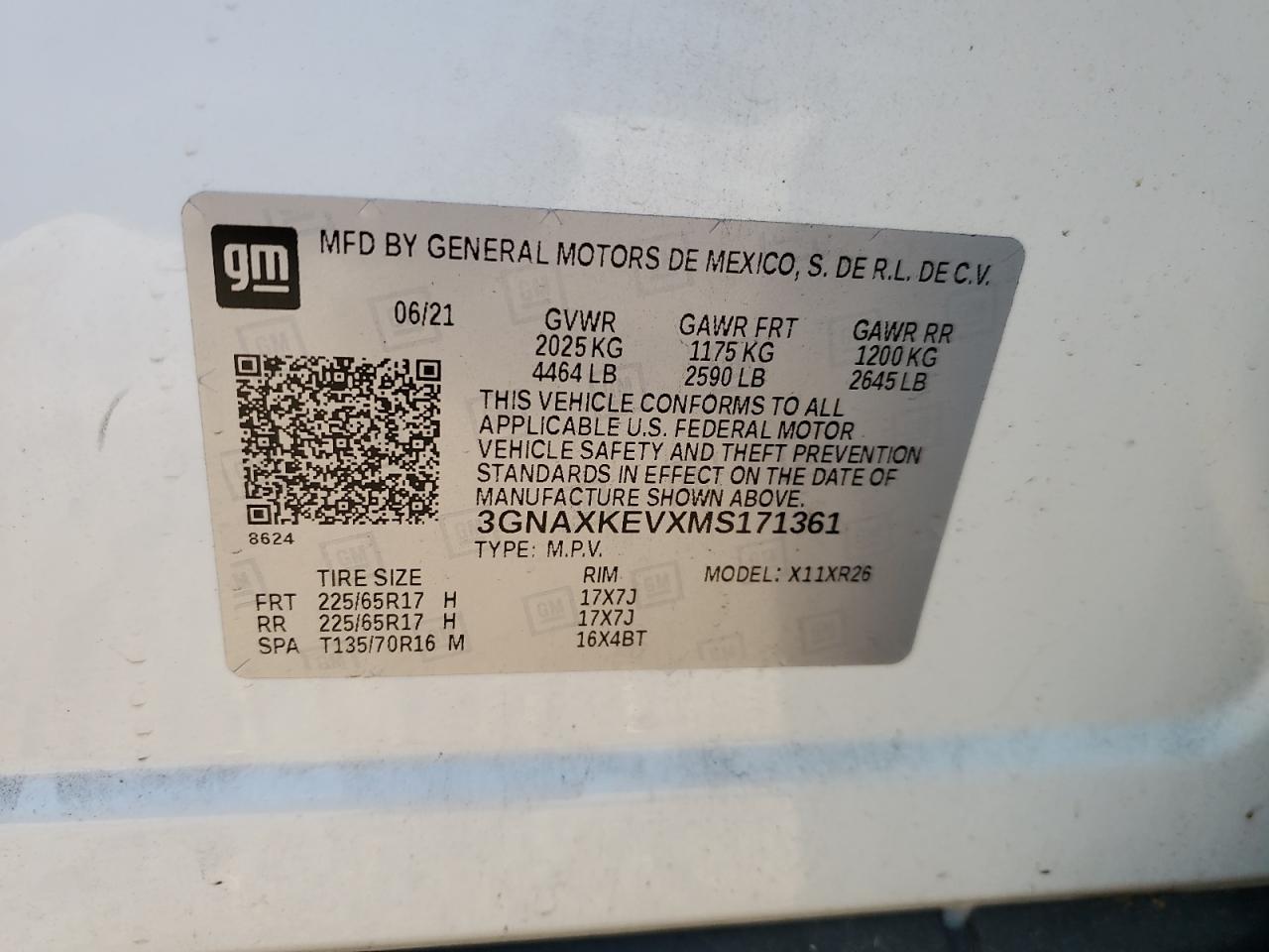 CHEVROLET EQUINOX 1.5 2021 г.в., (3GNAXKEVXMS171361) из США