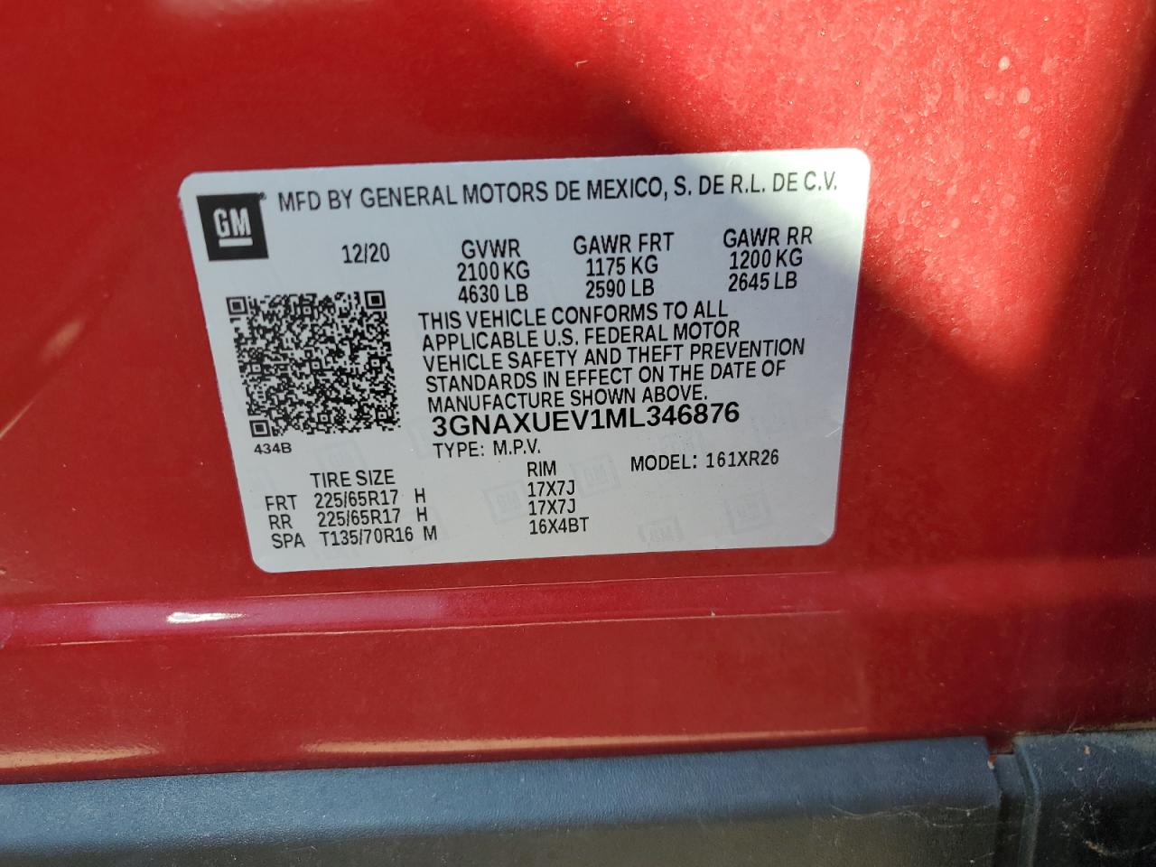 Цвет КрасныйЦилиндры 4Привод Полный приводVIN 3GNAXUEV1ML346876Состояние Заводится и едет (проверено)Повреждение Задняя