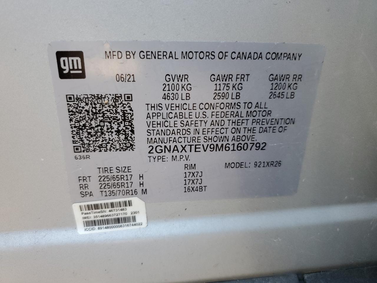CHEVROLET EQUINOX 1.5 2021 г.в., Полный привод (2GNAXTEV9M6160792) из США