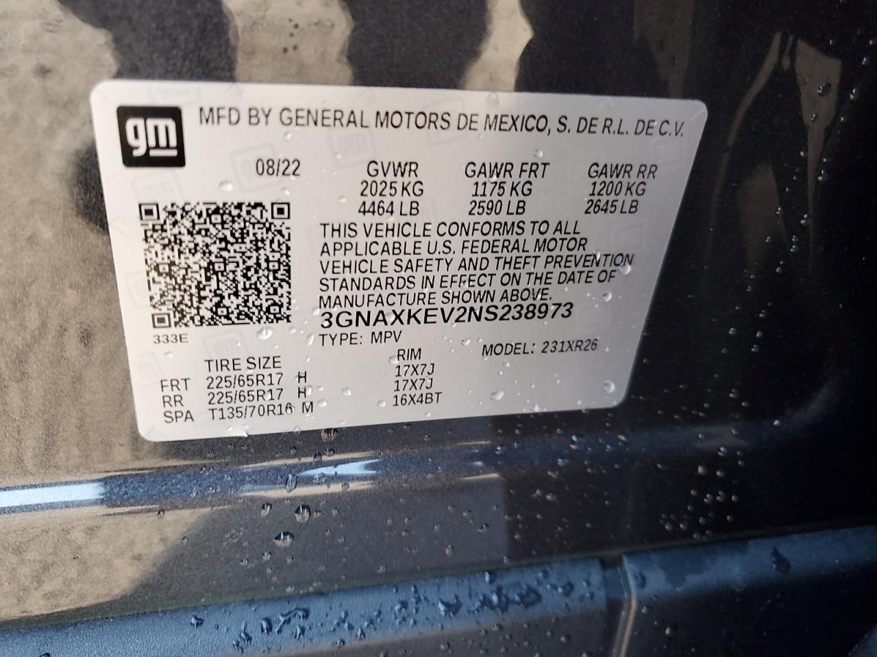 CHEVROLET EQUINOX 1.5 2022 г.в., (3GNAXKEV2NS238973) из США