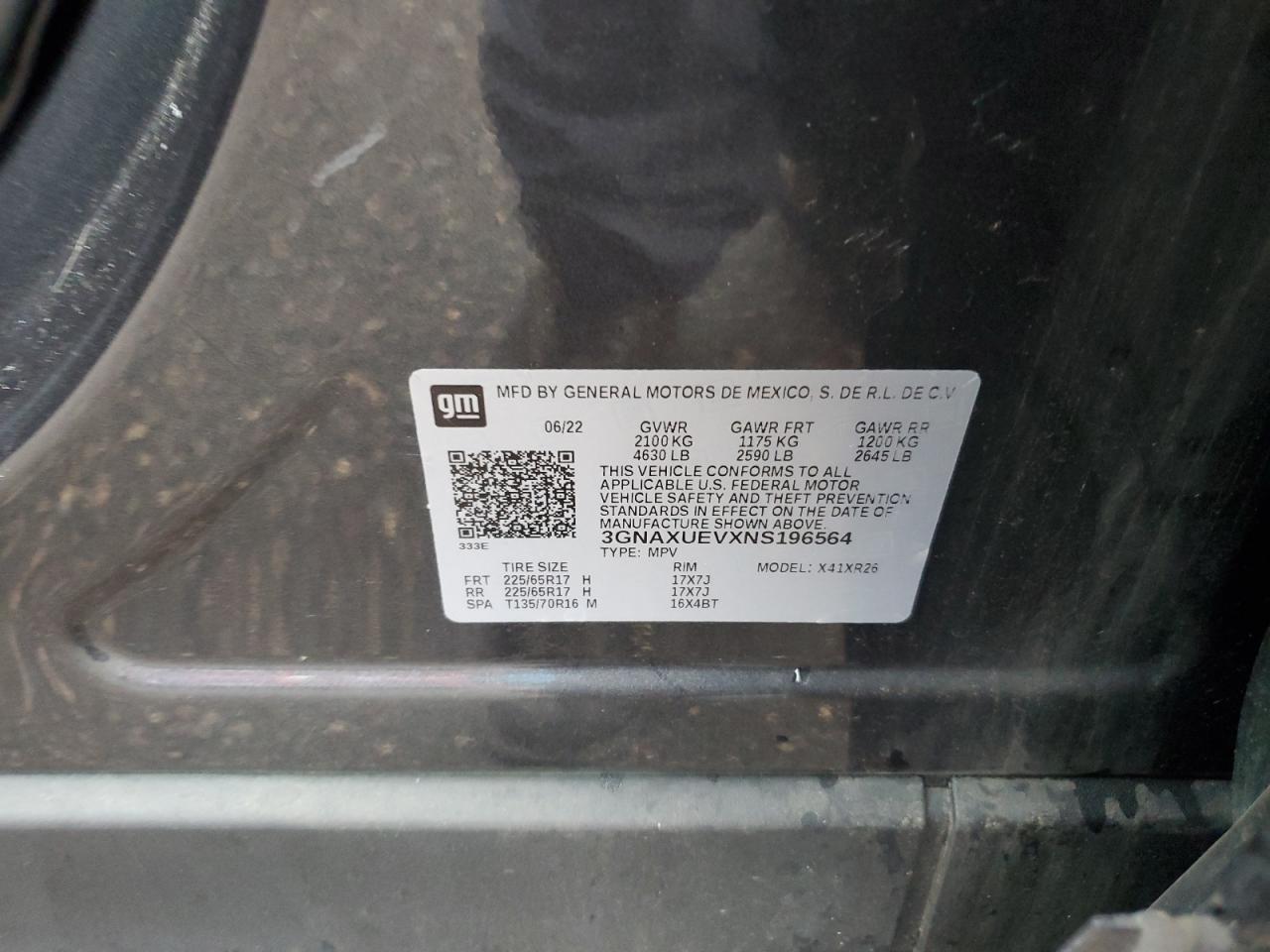 CHEVROLET EQUINOX 1.5 2022 г.в., Полный привод (3GNAXUEVXNS196564) из США