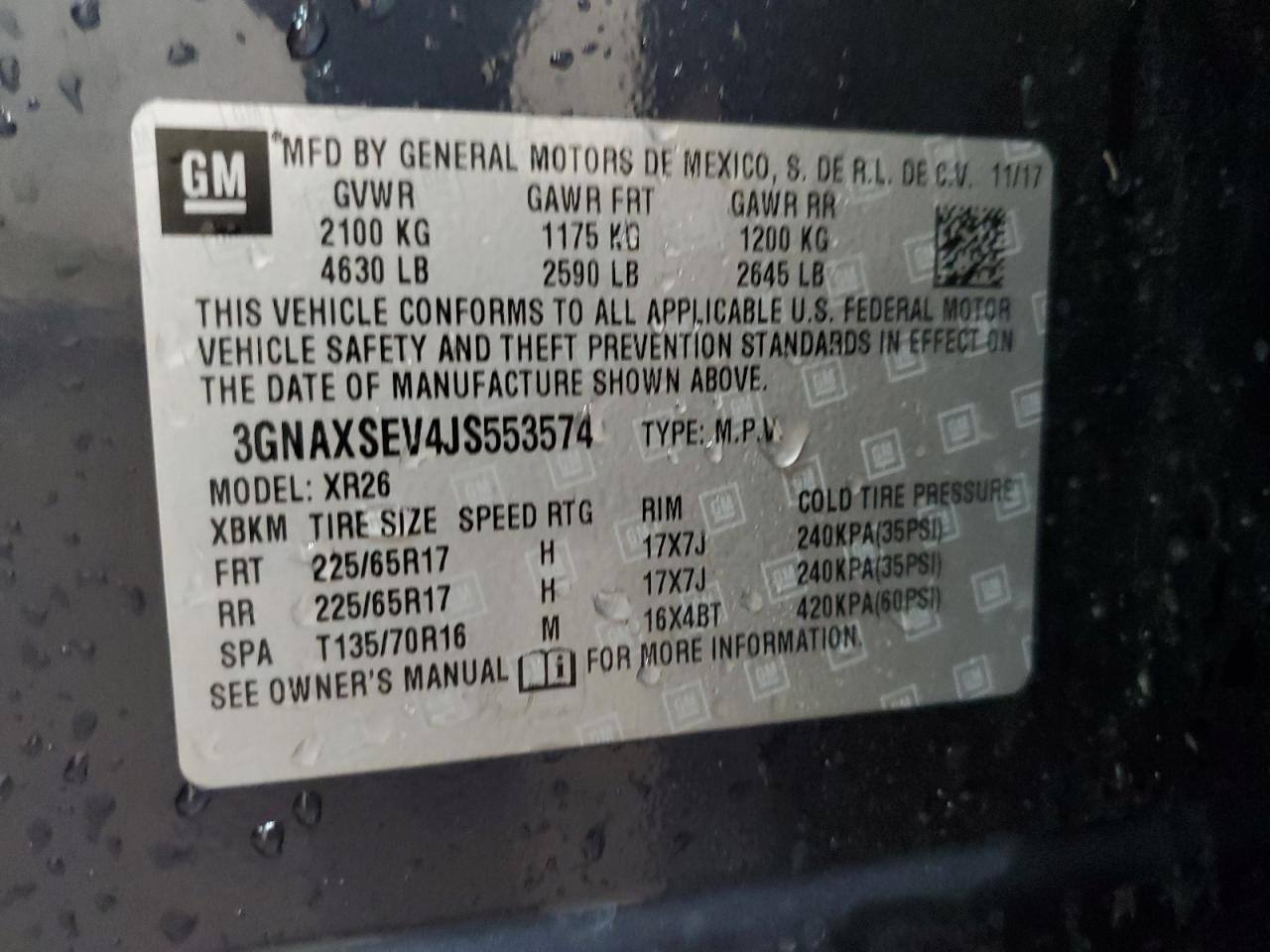 CHEVROLET EQUINOX 1.5 2018 г.в., Полный привод (3GNAXSEV4JS553574) из США