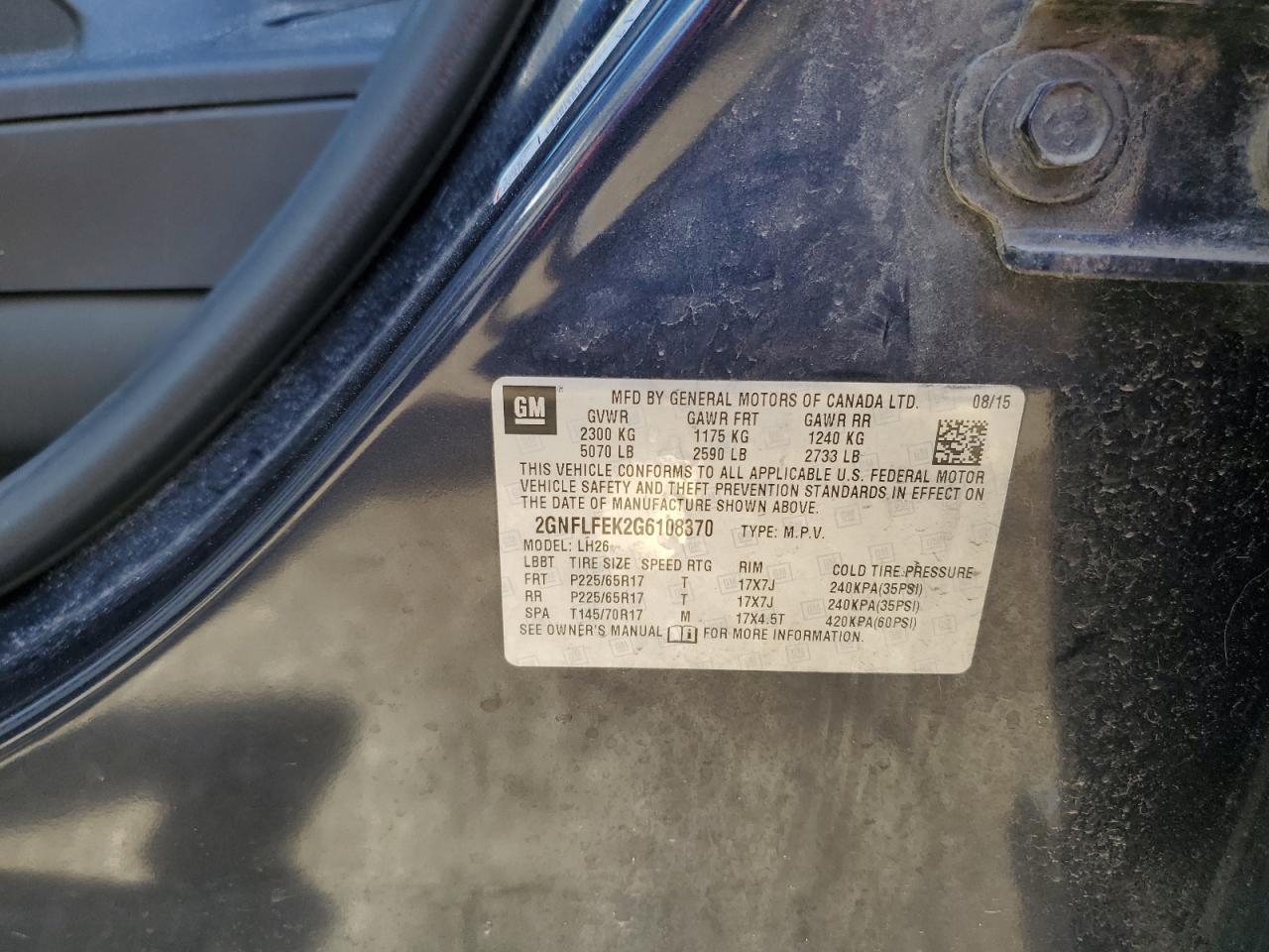 Цвет СинийЦилиндры 4Привод Полный приводVIN 2GNFLFEK2G6108370Состояние Заводится и едет (проверено)Повреждение Обычный износДата аукциона 2025-11-04