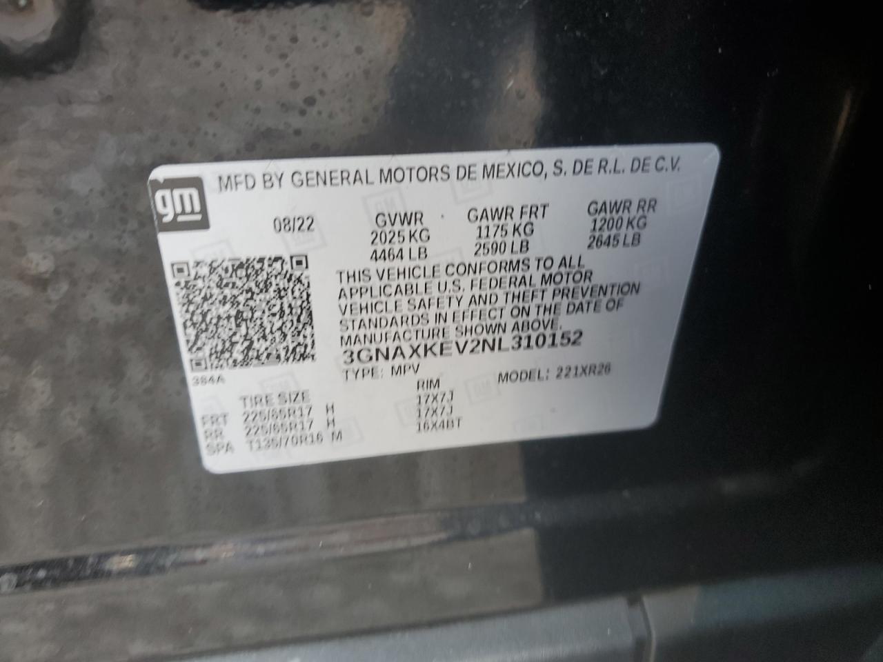 CHEVROLET EQUINOX 1.5 2022 г.в., (3GNAXKEV2NL310152) из США