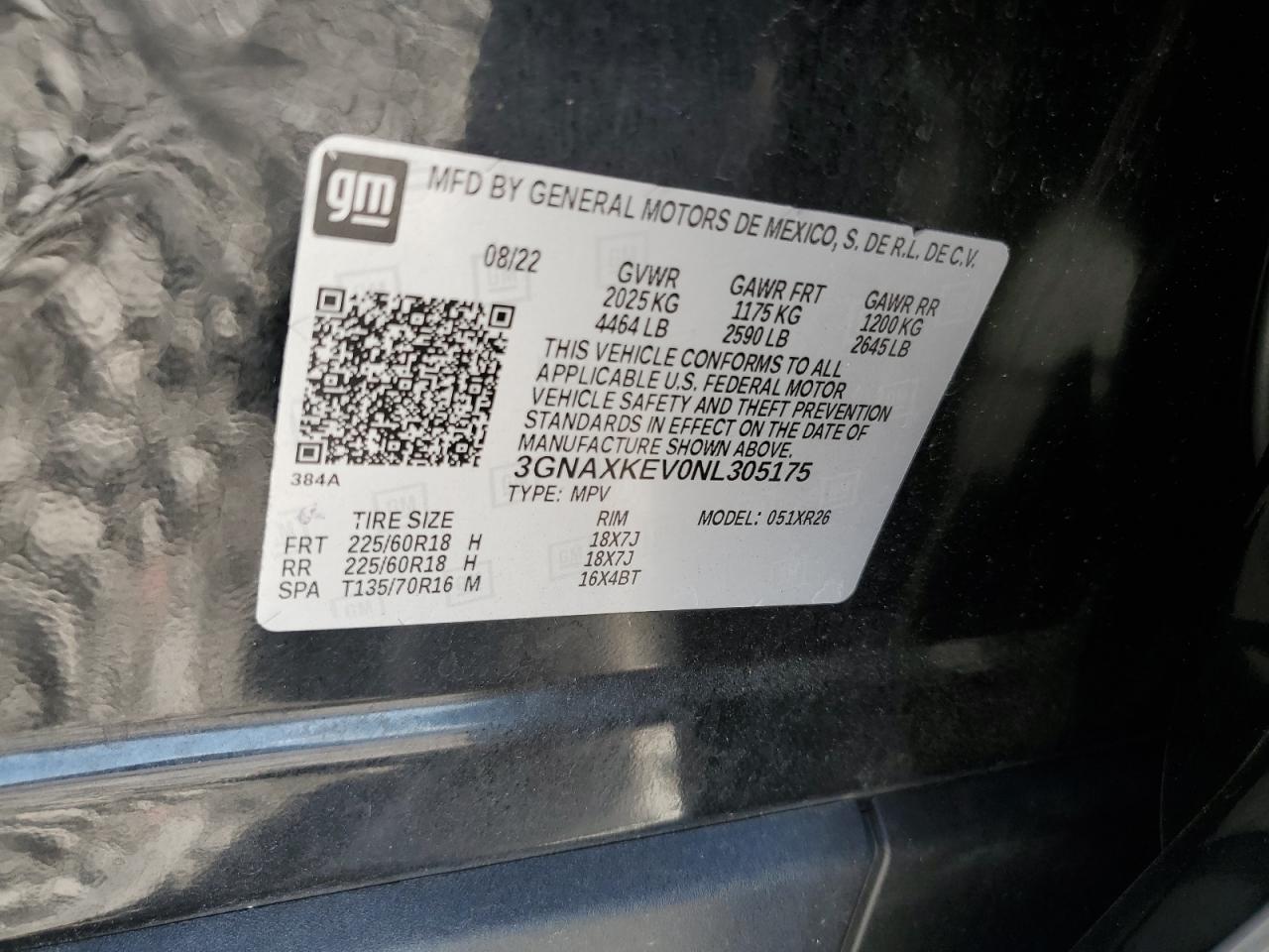CHEVROLET EQUINOX 1.5 2022 г.в., (3GNAXKEV0NL305175) из США