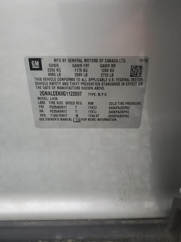 CHEVROLET EQUINOX 2.4 2016 г.в., (2GNALCEK8G1122697) из США
