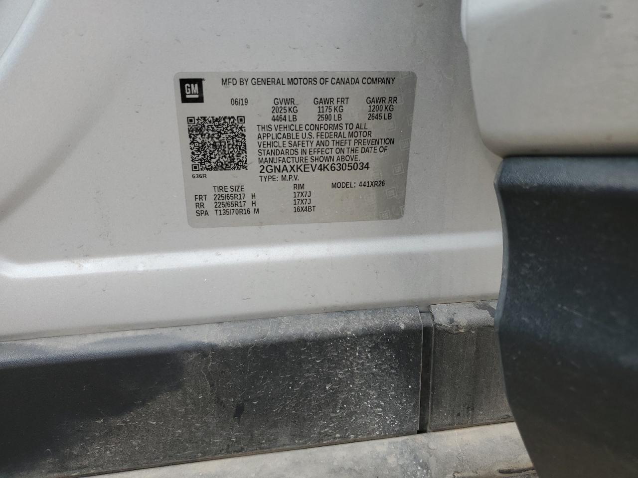CHEVROLET EQUINOX 1.5 2019 г.в., (2GNAXKEV4K6305034) из США