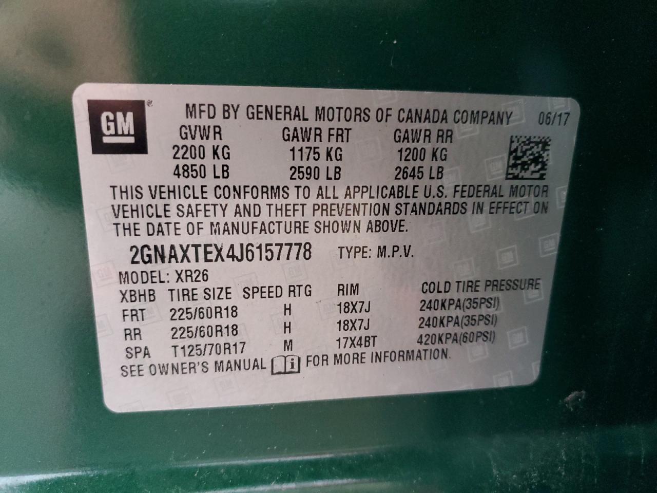 Цвет ЗеленыйЦилиндры 4Привод Полный приводVIN 2GNAXTEX4J6157778Состояние НеизвестноПовреждение По бокам