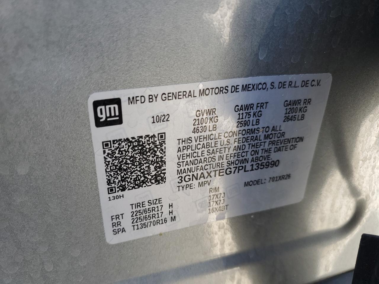 CHEVROLET EQUINOX 1.5 2023 г.в., Полный привод (3GNAXTEG7PL135990) из США