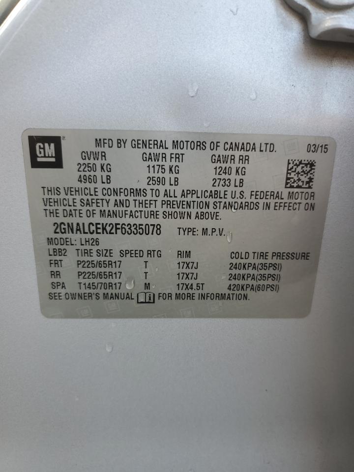 CHEVROLET EQUINOX 2.4 2015 г.в., (2GNALCEK2F6335078) из США