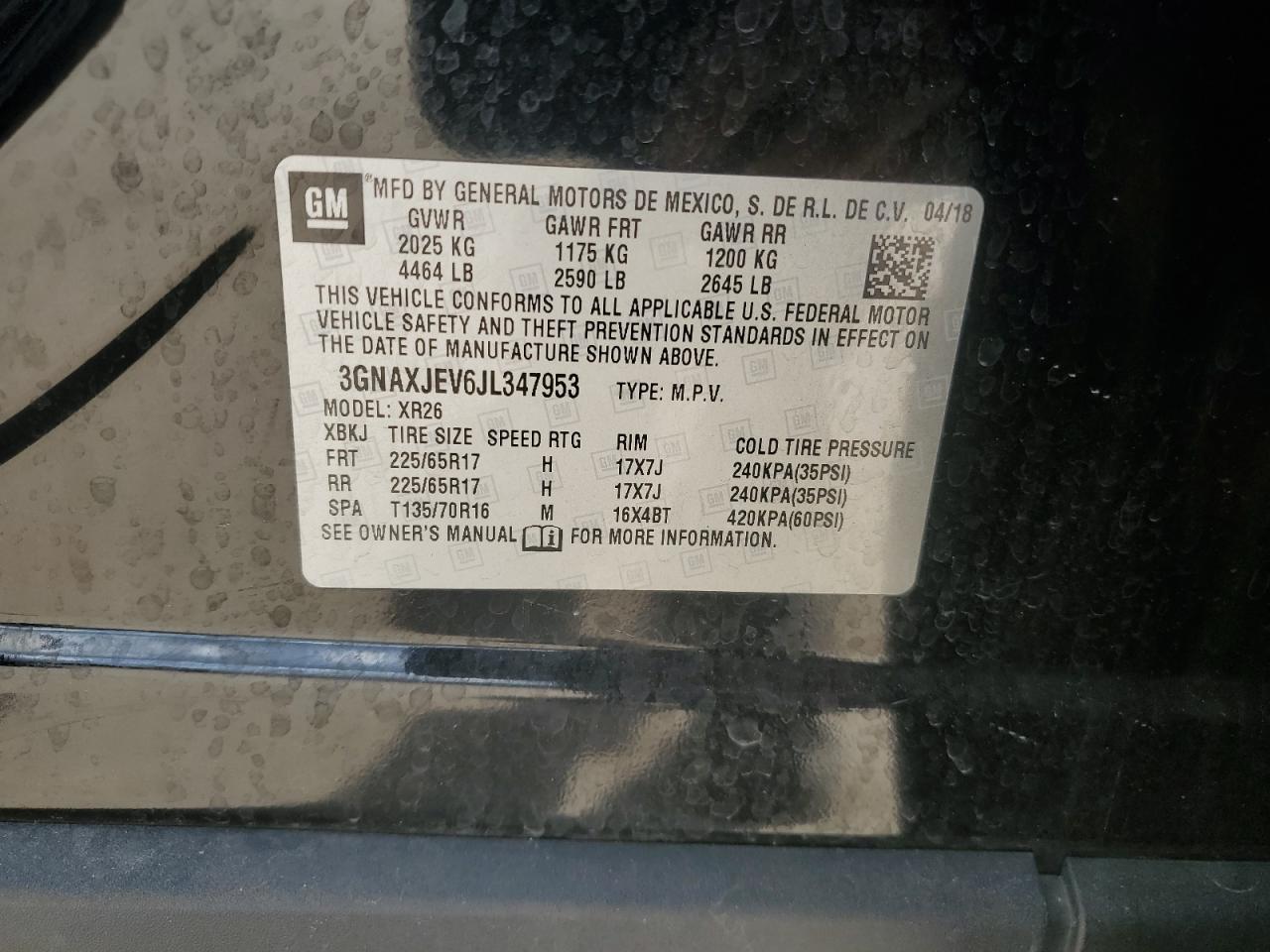 Цвет ЧерныйЦилиндры 4VIN 3GNAXJEV6JL347953Состояние Заводится и едет (проверено)Повреждение Передняя или задняя