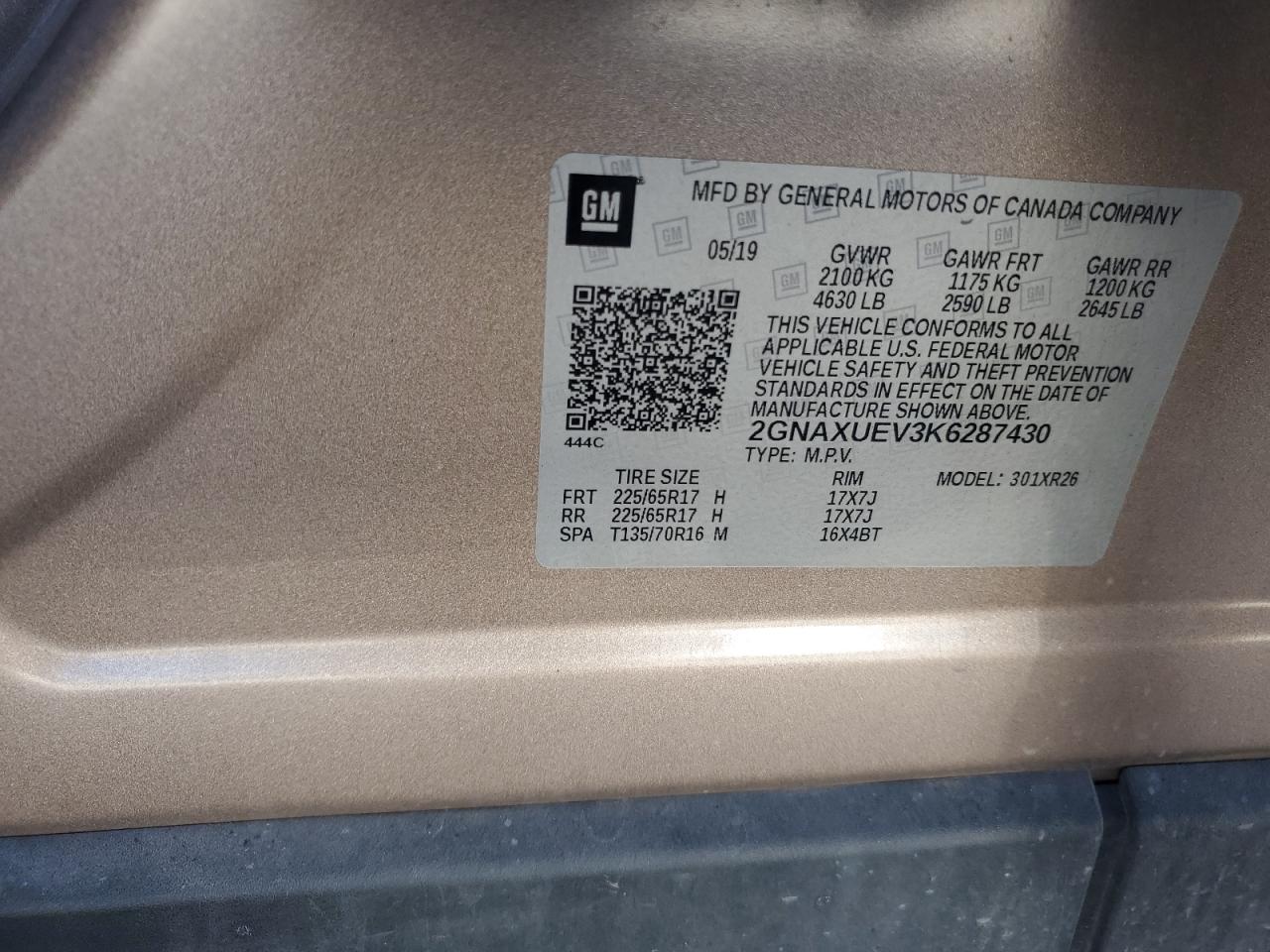 CHEVROLET EQUINOX 1.5 2019 г.в., Полный привод (2GNAXUEV3K6287430) из США