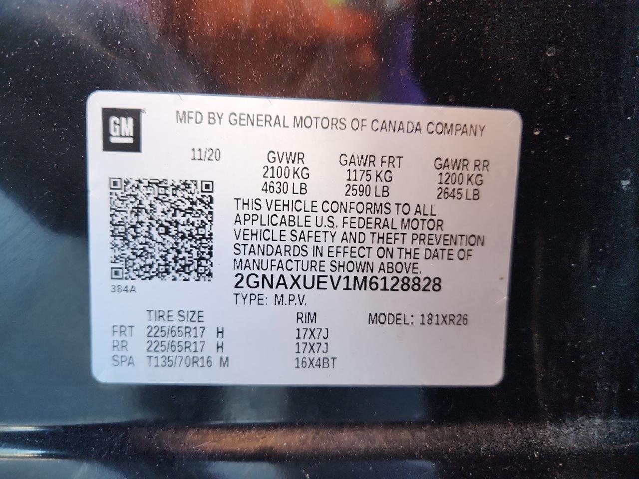 CHEVROLET EQUINOX 1.5 2021 г.в., Полный привод (2GNAXUEV1M6128828) из США
