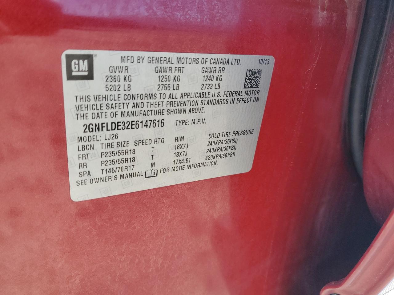 Цвет БургундияЦилиндры 6VIN 2GNFLDE32E6147616Состояние Заводится и едет (проверено)Повреждение По бокамДата аукциона 2025-11-04