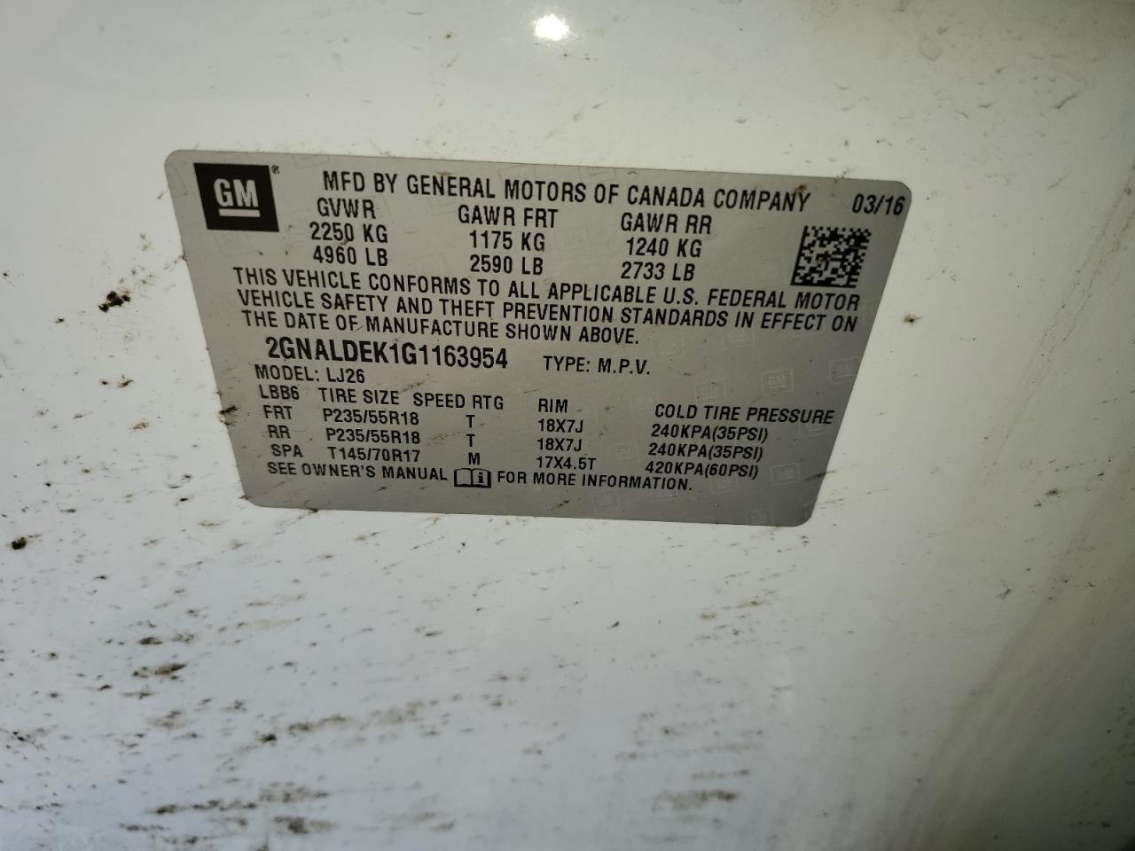 Цвет БелыйЦилиндры 4VIN 2GNALDEK1G1163954Состояние Заводится и едет (проверено)Повреждение Передняя или задняя