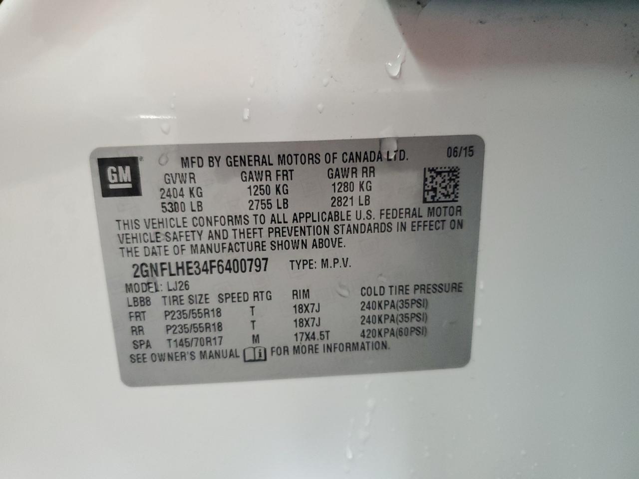 Цвет БелыйЦилиндры 6Привод Полный приводVIN 2GNFLHE34F6400797Состояние Заводится и едет (проверено)Повреждение По бокам