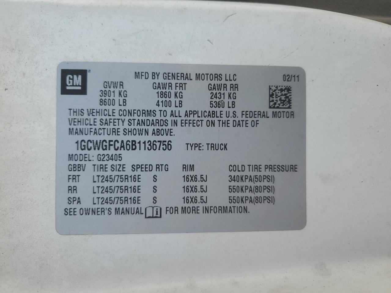 CHEVROLET EXPRESS 4.8 2011 г.в., Задний привод (1GCWGFCA6B1136756) из США