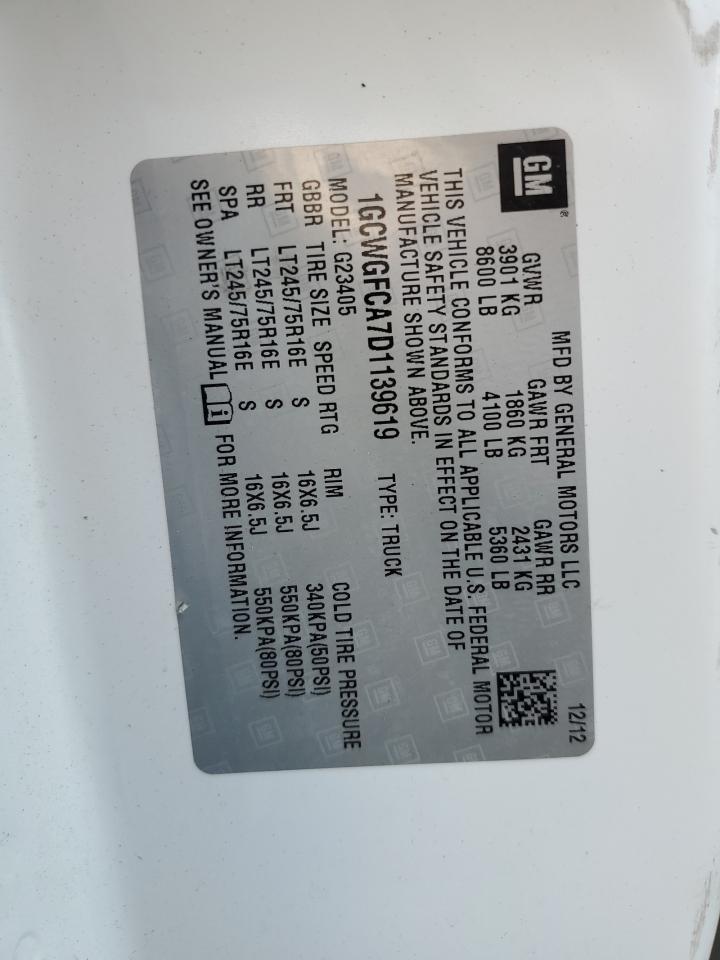 CHEVROLET EXPRESS 4.8 2013 г.в., Задний привод (1GCWGFCA7D1139619) из США