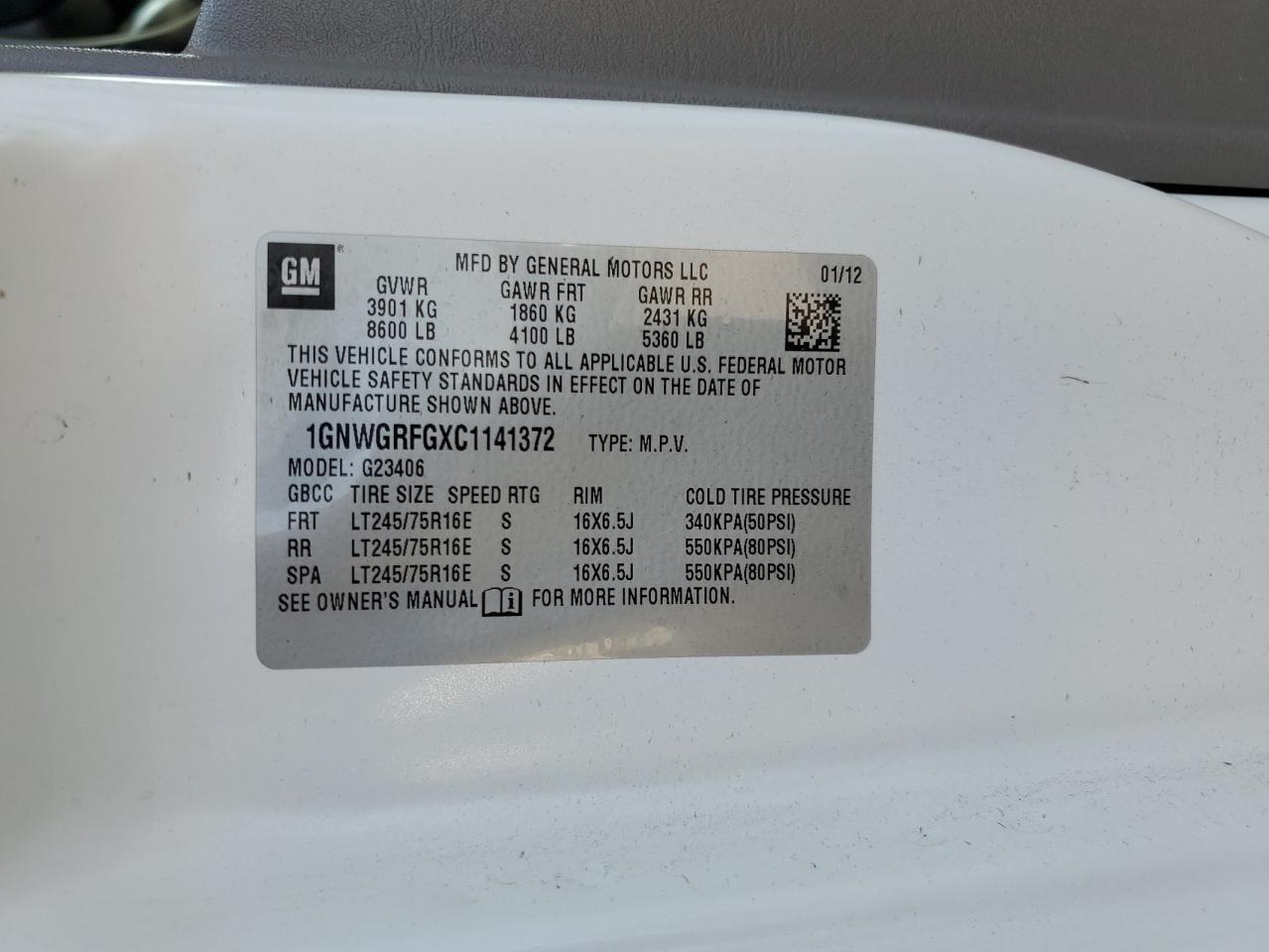 2012 CHEVROLET EXPRESS G1