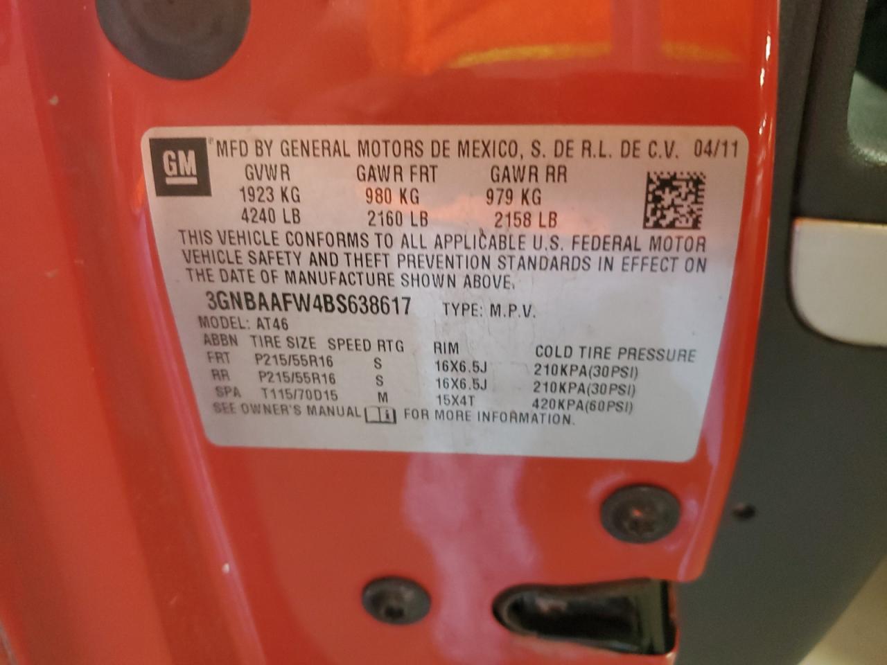 Цвет КрасныйЦилиндры 4VIN 3GNBAAFW4BS638617Состояние Заводится и едет (проверено)Повреждение Передняя или задняя