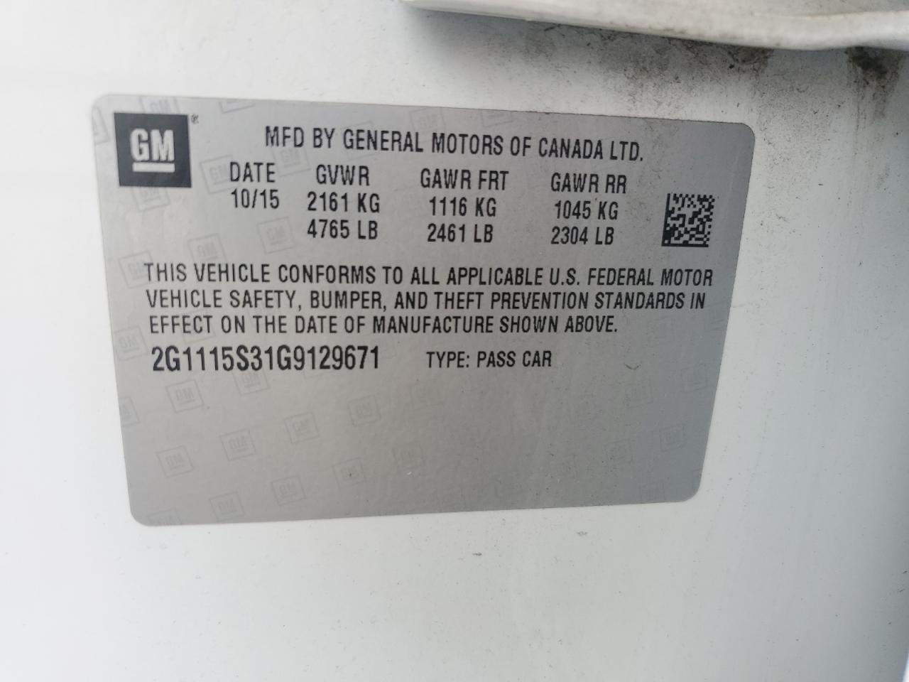 CHEVROLET IMPALA 3.6 2016 г.в., (2G1115S31G9129671) из США