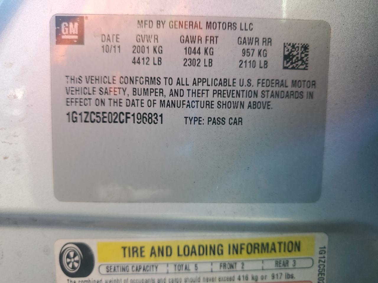 Цвет СерыйЦилиндры 4VIN 1G1ZC5E02CF196831Состояние Заводится и едет (проверено)Повреждение Низ