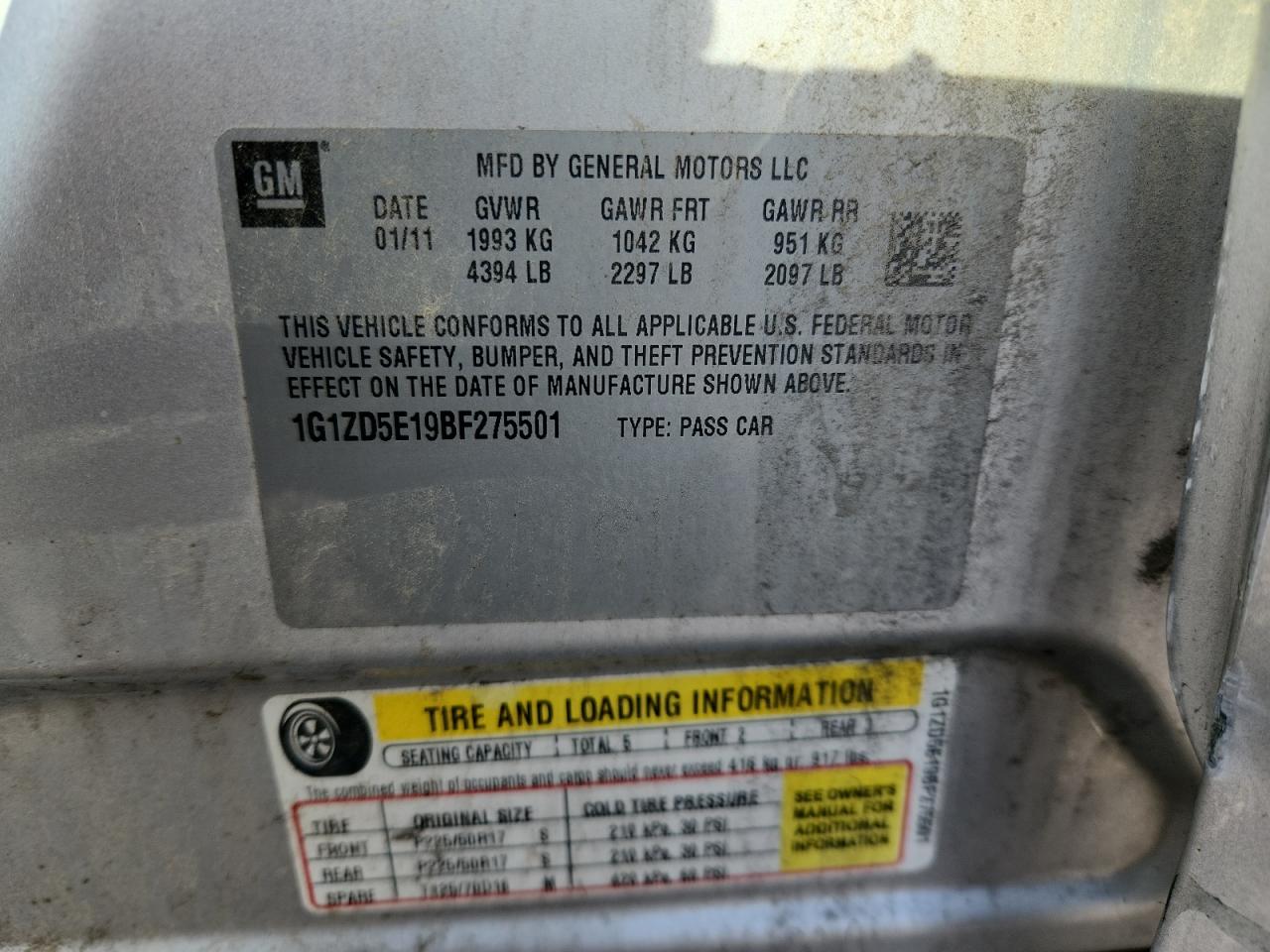 Цвет СеребряныйЦилиндры 4VIN 1G1ZD5E19BF275501Состояние Заводится и едет (проверено)Повреждение По бокам