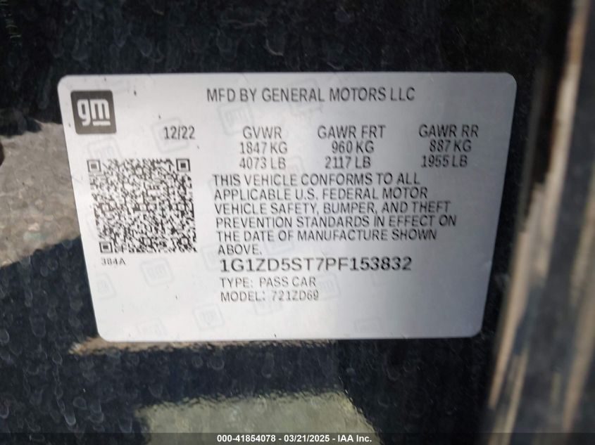 CHEVROLET MALIBU 1.5 2023 г.в., Передний привод (1G1ZD5ST7PF153832) из США