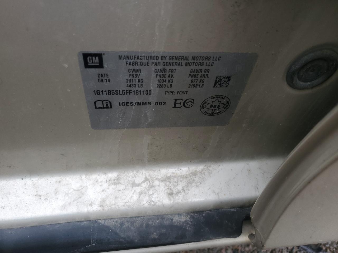 CHEVROLET MALIBU 2.5 2015 г.в., (1G11B5SL5FF181100) из США