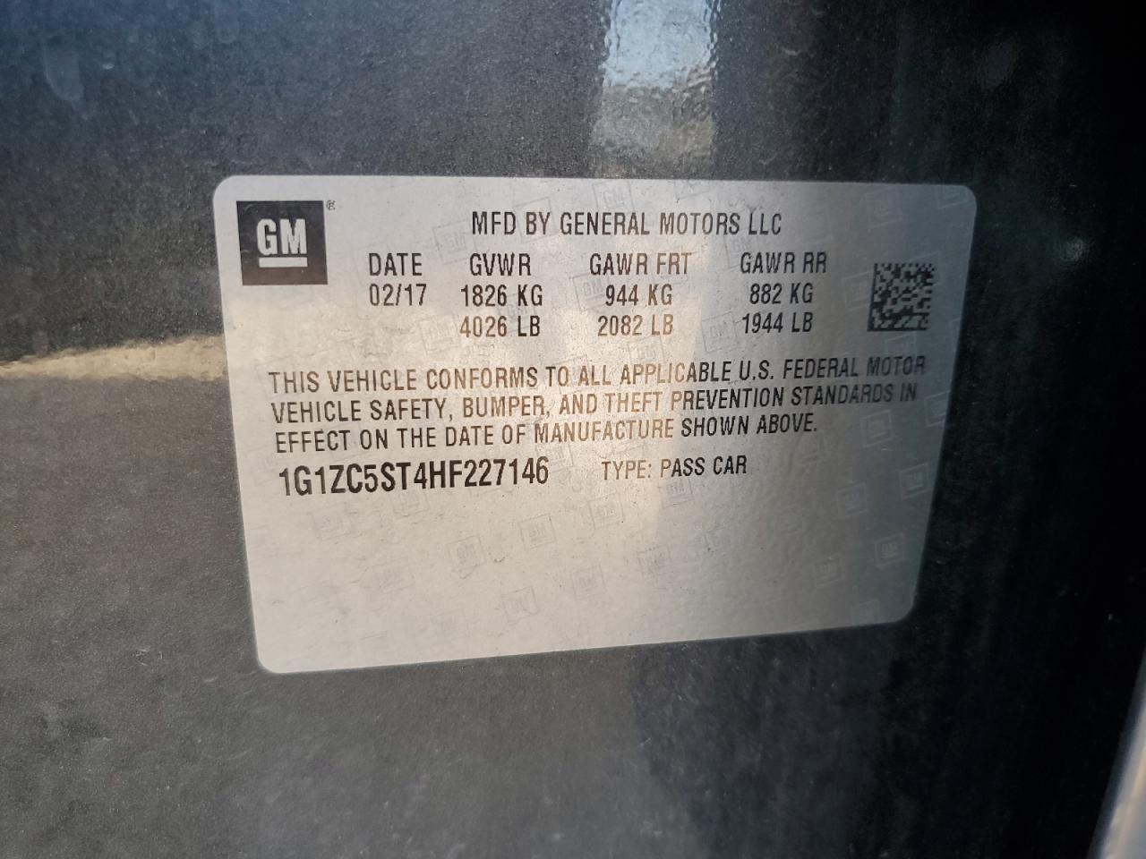 Цвет СерыйЦилиндры 4VIN 1G1ZC5ST4HF227146Состояние Заводится и едет (проверено)Повреждение Передняя или задняя