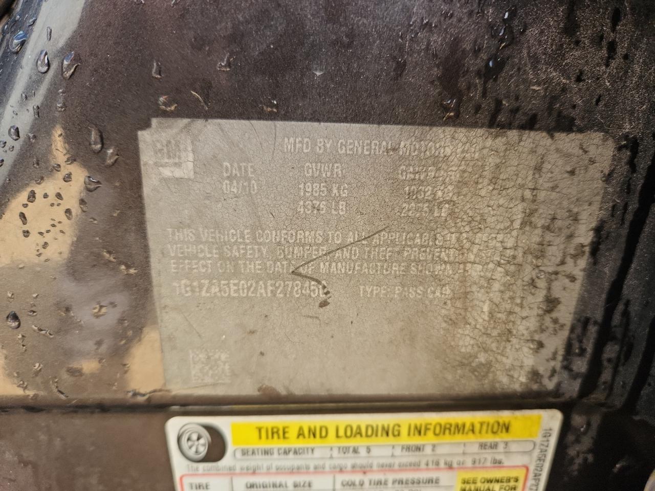 Цвет Древесный угольЦилиндры 4VIN 1G1ZA5E02AF278450Состояние НеизвестноПовреждение Передняя или задняя
