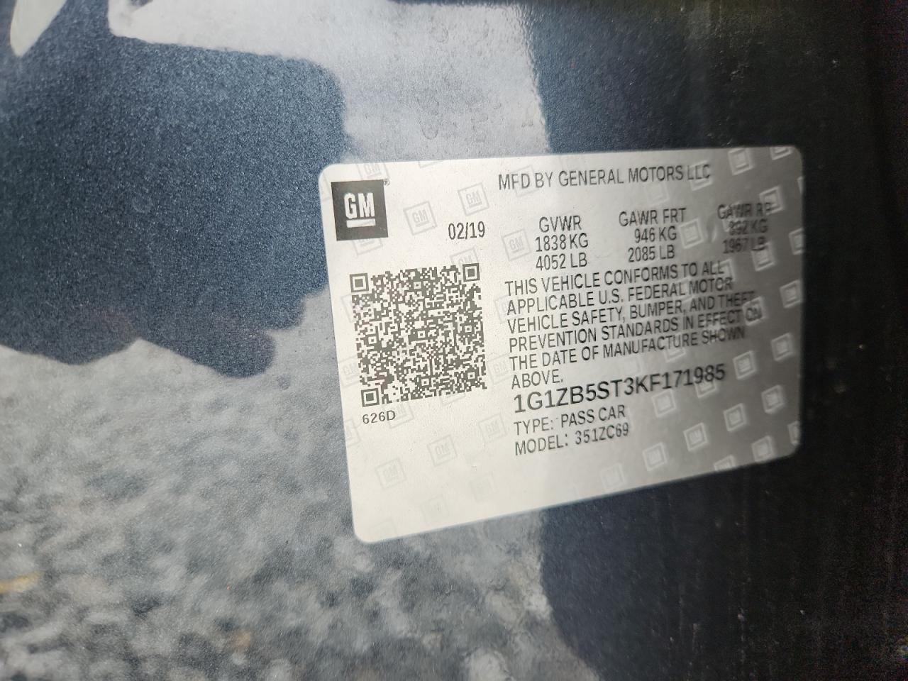CHEVROLET MALIBU 1.5 2019 г.в., (1G1ZB5ST3KF171985) из США