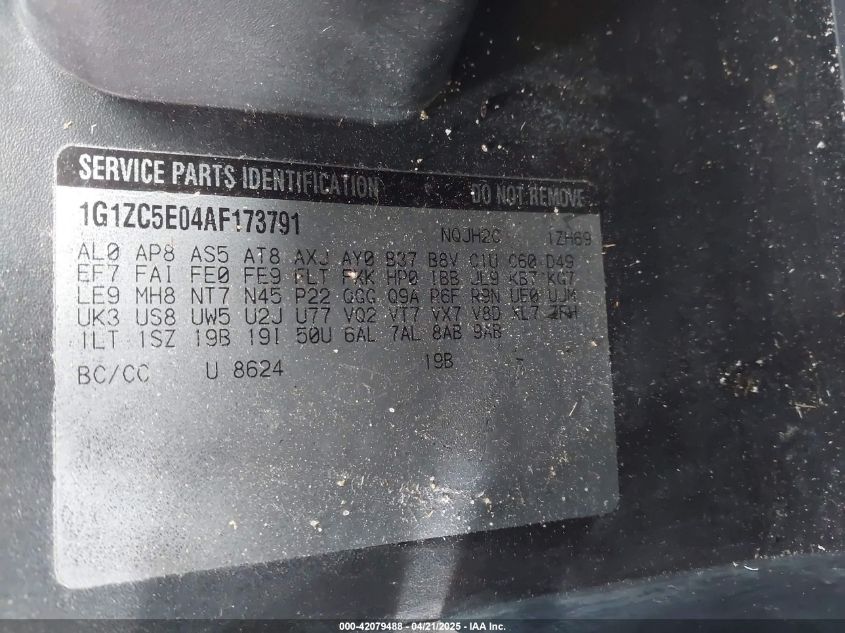 Цвет БелыйЦилиндры 4Привод Передний приводVIN 1G1ZC5E04AF173791Состояние СтационарноПовреждение Левая сторона