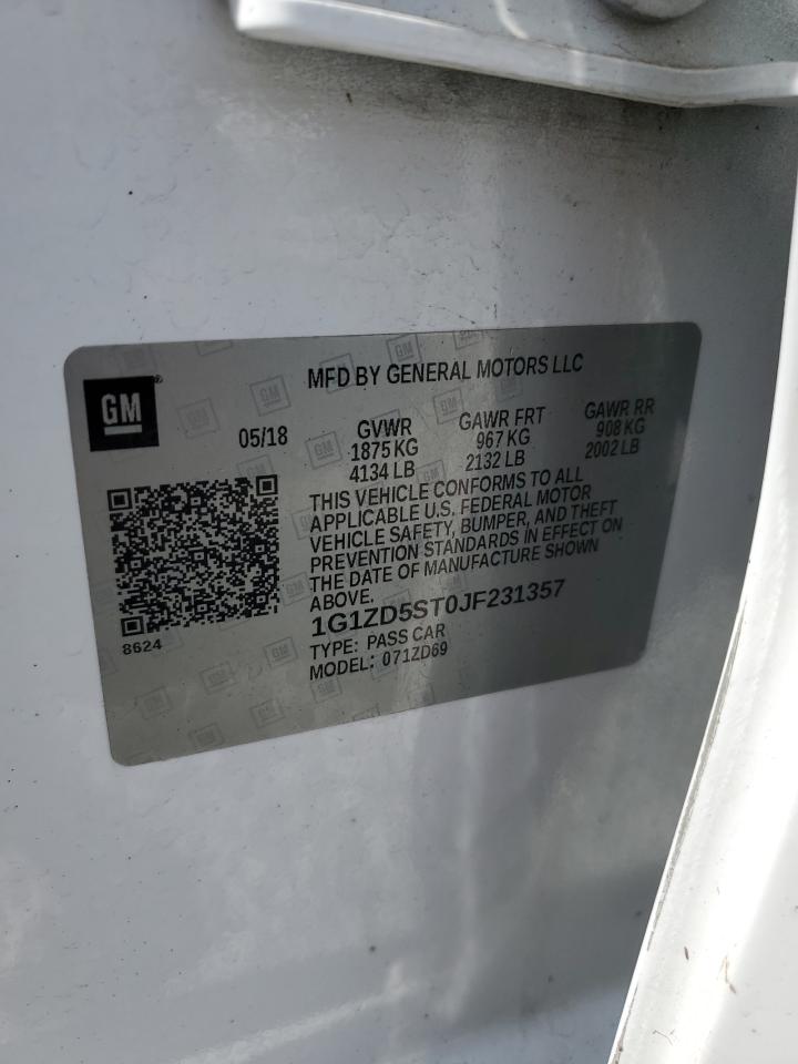Цвет БелыйЦилиндры 4VIN 1G1ZD5ST0JF231357Состояние НеизвестноПовреждение По всему авто