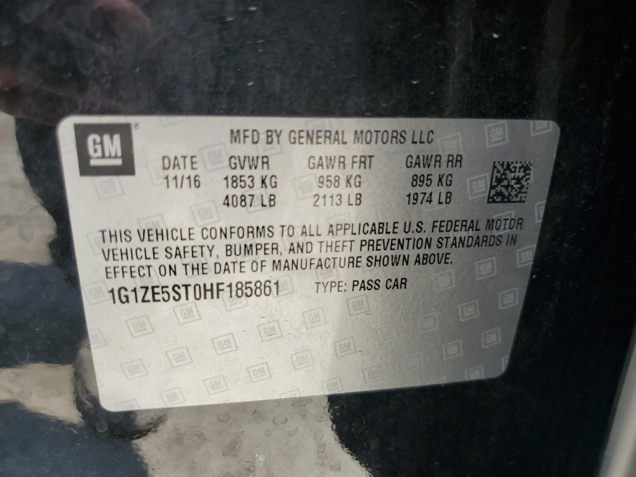 Цвет Древесный угольЦилиндры 4VIN 1G1ZE5ST0HF185861Состояние ЗаводитсяПовреждение Задняя