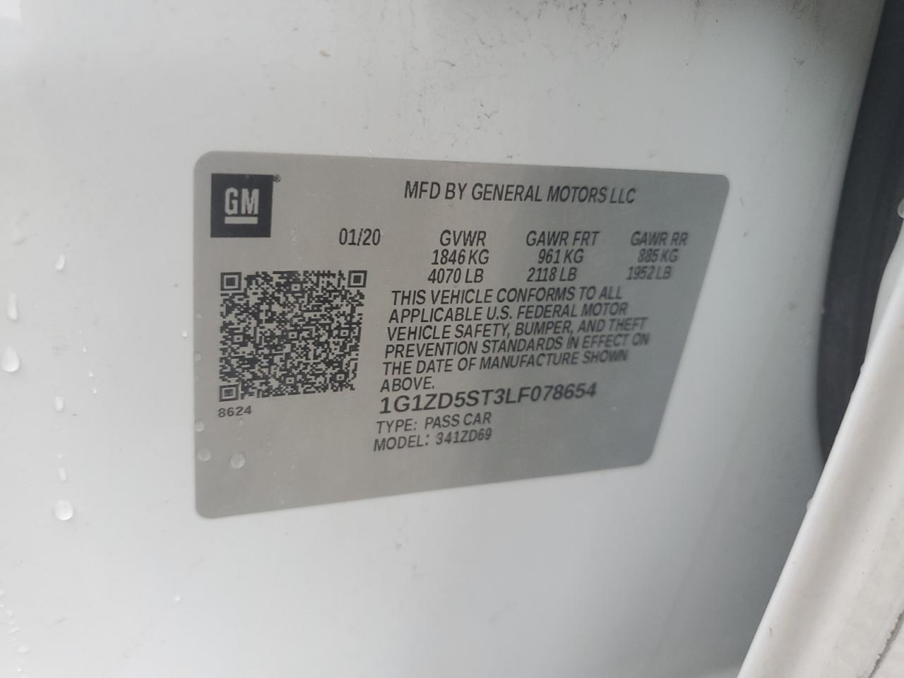 CHEVROLET MALIBU 1.5 2020 г.в., (1G1ZD5ST3LF078654) из США